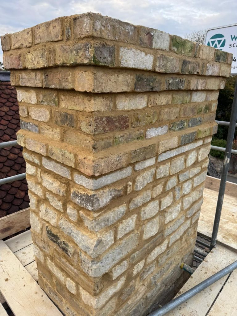 The work has now been completed. As previously explained, we had a delay in completion due to the state of the damage to the chimney and difficulty sourcing the additional materials needed for our beautiful building. We needed extra patience, with each stage needing to be approved again by the council to make sure we were working in keeping with our special building.